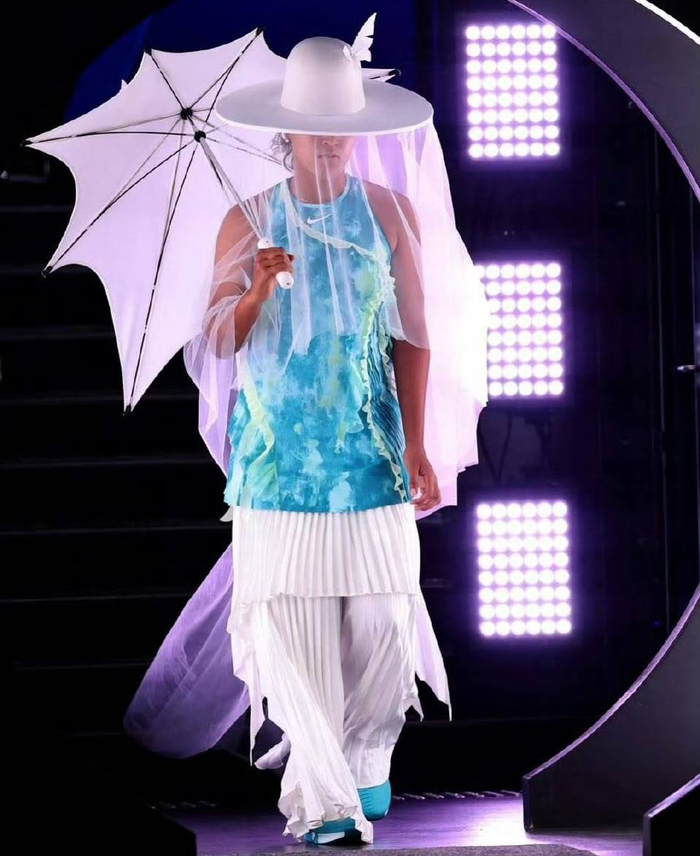 不过,比大坂直美的比赛更引人注目的是她的出场造型。一身纯白战袍搭配类似头纱的装饰,迅速引爆了社交媒体。